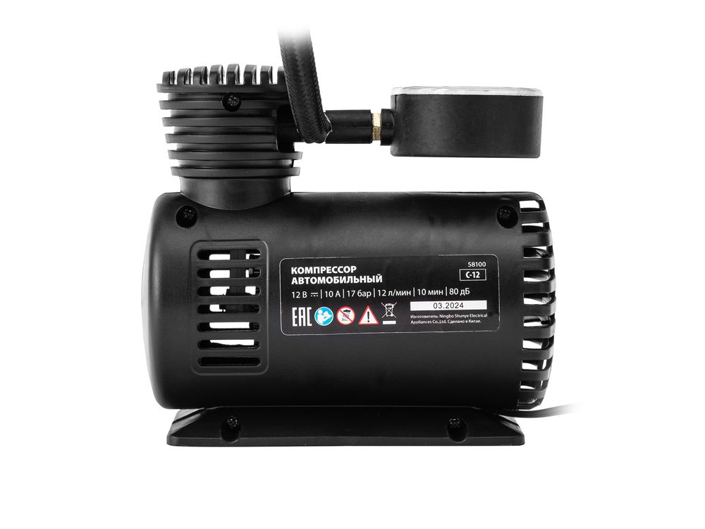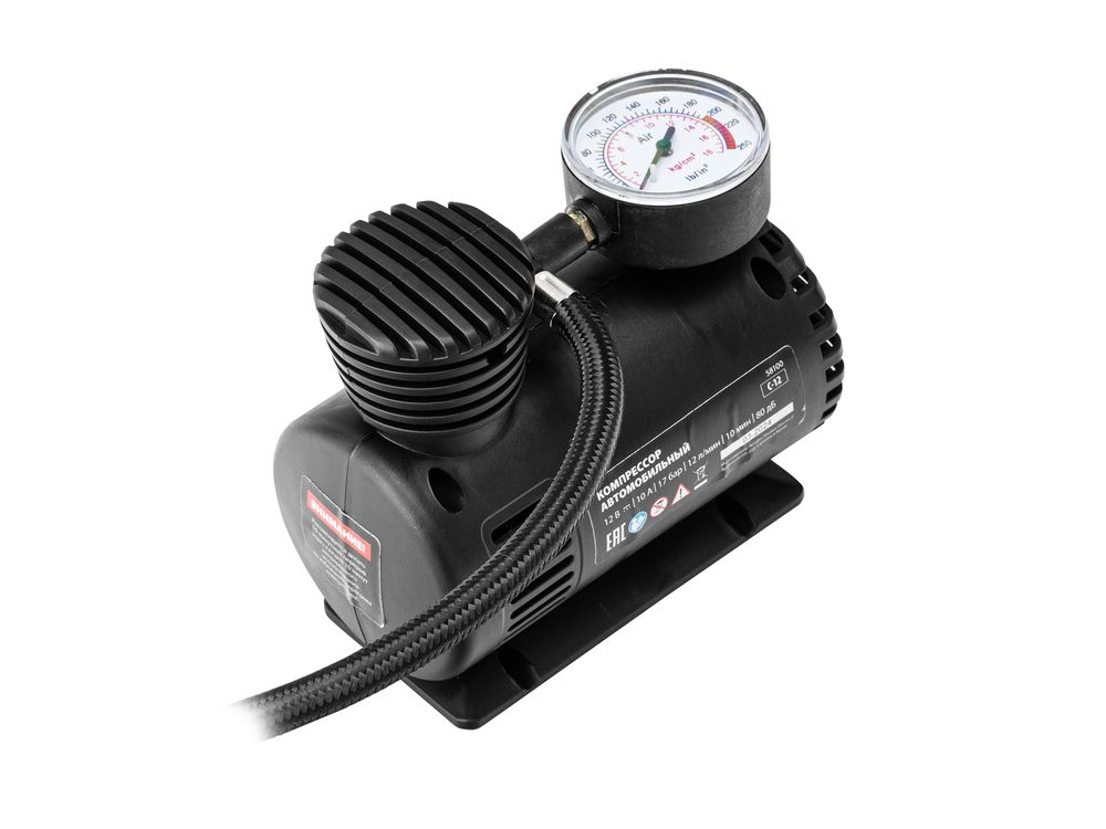 Автомобильный компрессор MTX C-12 58100 производительностью 12 л/мин обеспечивает давление до 17 атмосфер и питается от прикуривателя 12 В. Используется для накачки шин, а также мячей, матрасов, лодок и другого инвентаря. Компрессор поршневого типа способен накачать колесо R16 за 10 минут. Устройство пригодится в поездке, на даче, во время отдыха на природе.