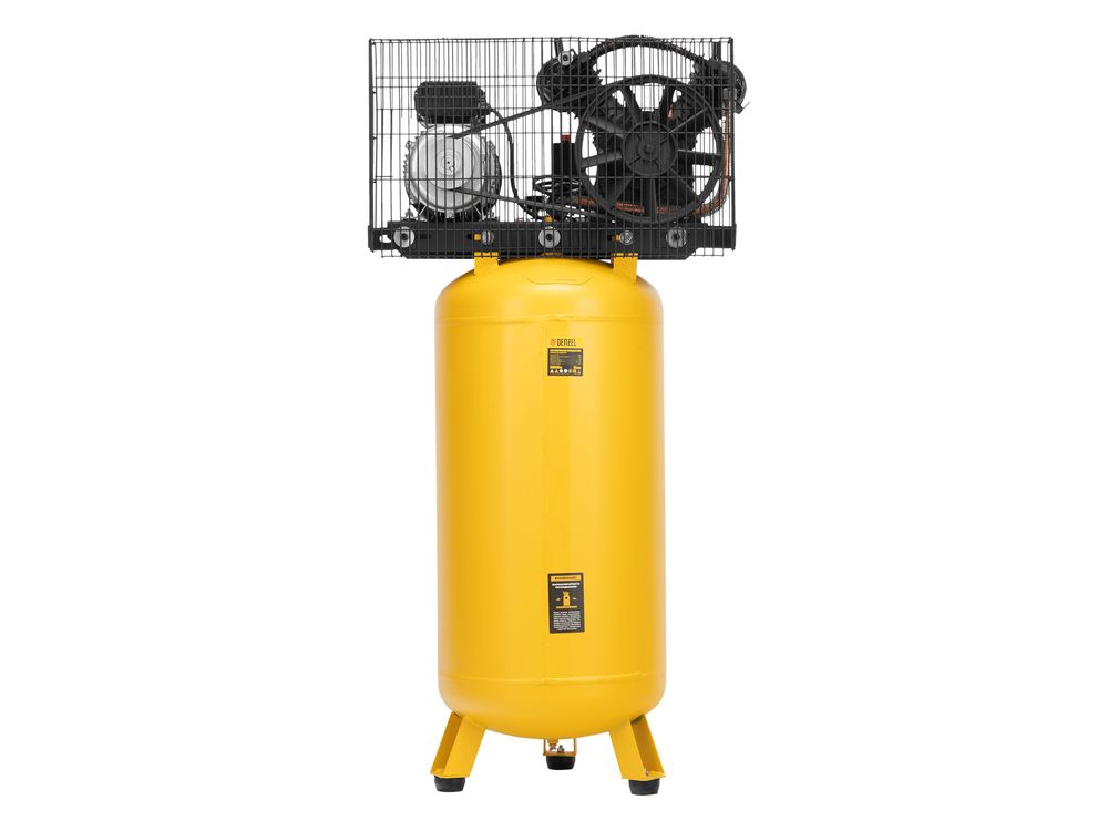 Компрессор воздушный с ременным приводом Denzel BCV2200/100V 58112 мощностью 2,3 кВт, с ресивером объемом 100 л используется для обеспечения сжатым воздухом таких инструментов, как краскораспылитель, гайковерт, гвоздезабивной пистолет, дрель, пистолет для накачки шин и пр. Высокая производительность 440 л/мин позволяет использовать его не только в загородных домах и гаражах, но и на фабриках, станциях технического обслуживания автомобилей, в различных мастерских.,Сжатый воздух накапливается в ресивере объемом 100 литров. Он располагается вертикально, что позволяет сэкономить место на рабочей площадке. Для устойчивости компрессор крепится к стене или полу.