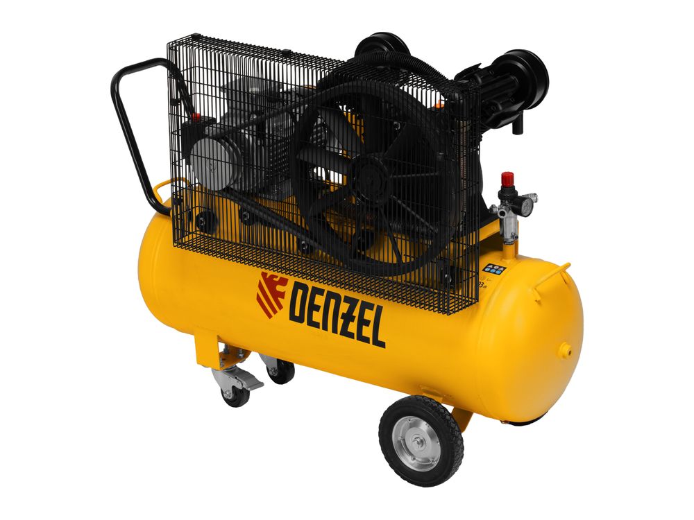 Воздушный компрессор Denzel BCV 4000-T/100 58117 с ременным приводом, мощностью 4,0 кВт и производительностью 690 л/мин, с ресивером объемом 100 л, — источник сжатого воздуха для работы с пневмогайковертом, пневмодрелью, краскопультом, углошлифовальной машиной или другим пневмоинструментом. Двигатель с медной обмоткой обеспечивает стабильную работу в течение длительного времени. Для подключения инструмента предусмотрено 2 быстросъемных коннектора Рапид (Евро) и штуцер «елочка» с краном. Специальный порт позволяет подключить напрямую дополнительный ресивер или пневмомагистраль. Компрессор отличается высокой производительностью и будет полезен на строительной площадке и станции техобслуживания.