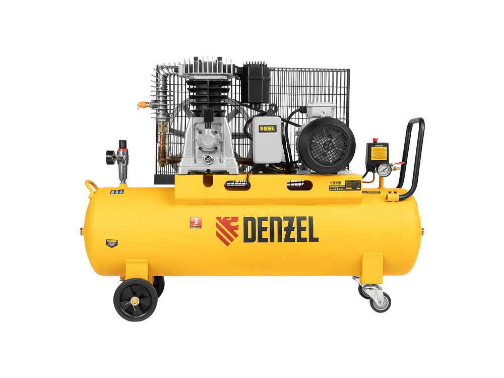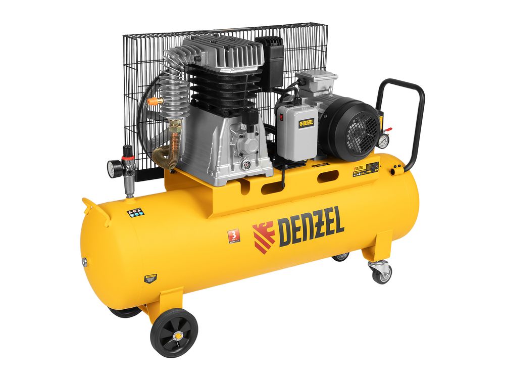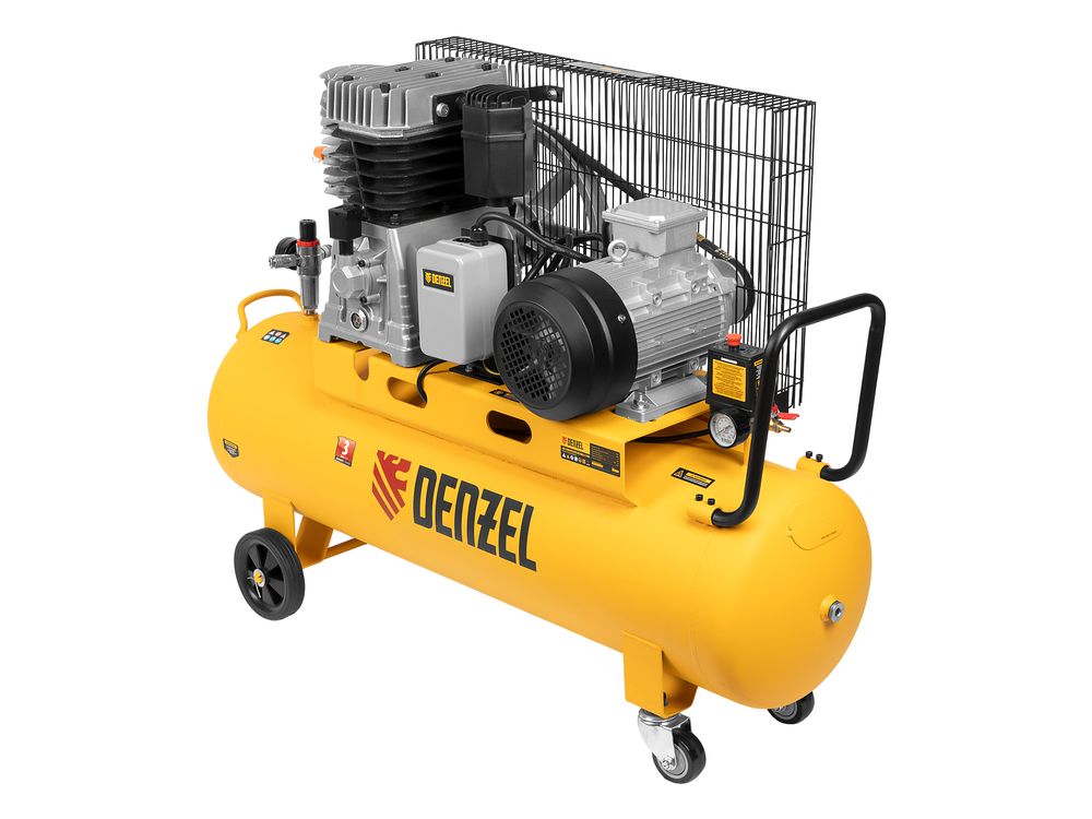 Воздушный компрессор Denzel BCI4000-T/100 58123 мощностью 4,0 кВт и производительностью 690 л/мин, с ресивером объемом 100 л, с ременным приводом и двумя цилиндрами, предназначен для регулярных и долговременных работ с пневмоинструментом — пневмогайковертом, пневмозубилом, пневмомолотком, пневмодрелью и другим оборудованием. Отличается высокой производительностью, что позволяет использовать его на строительной площадке, небольшом производстве, станции ТО.