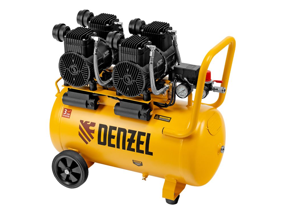 Безмасляный малошумный компрессор Denzel DLP-3000/50 58144 мощностью 3 кВт (2 x 1,5 кВт) и производительностью 500 л/мин, с ресивером объемом 50 л, оснащен двигателем со скоростью вращения 2850 об/мин. Предназначен для обеспечения пневмоинструмента сжатым воздухом. Для работы компрессора не требуется масло, поэтому он подходит для проведения покрасочных работ и продувки электронных компонентов. Прямой привод обеспечивает максимально эффективную работу и высокую производительность. Благодаря низкому уровню шума эксплуатация компрессора не вызывает ощущение дискомфорта.