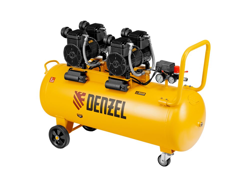 Безмасляный малошумный компрессор Denzel DLP-3000/100 58145 мощностью 3 кВт (2 x 1,5 кВт) и производительностью 500 л/мин, с ресивером объемом 100 л, оснащен двигателем со скоростью вращения 2850 об/мин. Предназначен для обеспечения пневмоинструмента сжатым воздухом. Для работы компрессора не требуется масло, поэтому он подходит для проведения покрасочных работ и продувки электронных компонентов. Прямой привод обеспечивает максимально эффективную работу и высокую производительность. Благодаря низкому уровню шума эксплуатация компрессора не вызывает ощущение дискомфорта.