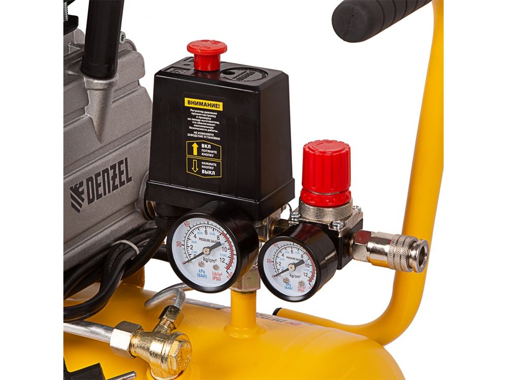 Воздушный компрессор с прямым приводом Denzel DC1500/24 58160 мощностью 1,5 кВт и производительностью на входе 220 л/мин, с объемом ресивера 24 л обеспечивает подачу сжатого воздуха к пневмоинструменту — пневмогайковерту, пневмошлифмашине, пневмодрели. Эффективная система смазки, снижающая нагрузку на двигатель, позволяет использовать компрессор для долговременных работ. Поэтому он будет полезен не только в загородном доме, но и в мастерской или гараже.