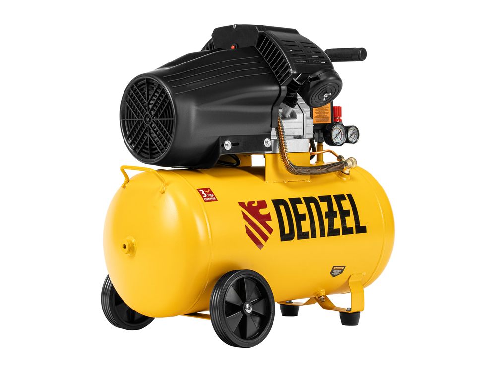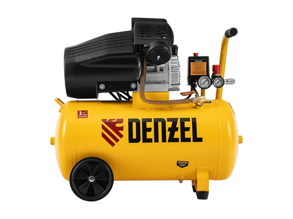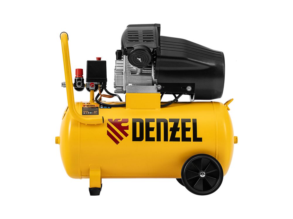 Воздушный компрессор с прямым приводом Denzel DCV1800/50 58168 мощностью 1,8 кВт и производительностью на входе 320 л/мин, с объемом ресивера 50 л, подходит для обеспечения длительной работы пневмогайковерта, пневмозубила, пневмодрели, пневмомолотка или другого пневмоинструмента. Быстроразъемные коннекторы Рапид (Евро) облегчают подключение пневмомагистралей. Эффективная система смазки снижает износ деталей и уменьшает нагрузку на двигатель, что позволяет использовать компрессор в профессиональной сфере.
