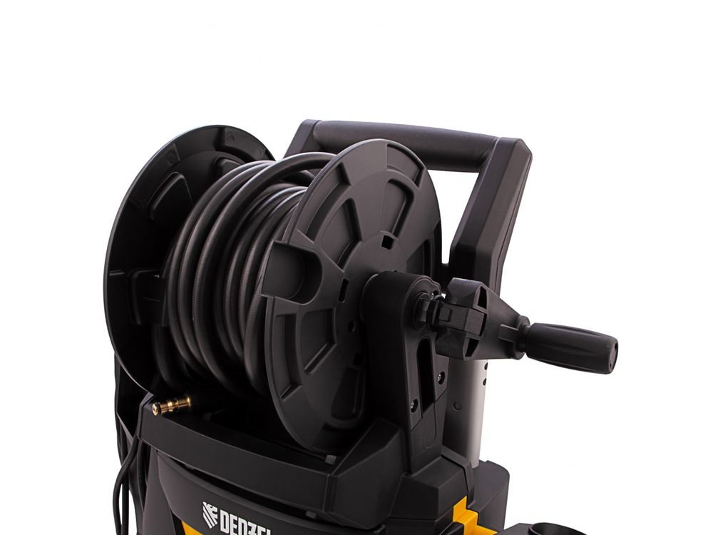 Моечная машина высокого давления Denzel R-210iD с асинхронным двигателем и барабаном для шланга оптимально подходит для очищения автомобилей, заборов, дорожек и садового инвентаря. Эффективно справляться с серьезными загрязнениями позволяют мощный мотор 2600 Вт и помпа с производительностью 8 л/мин и максимальным давлением 210 бар.,Отсутствие водопровода поблизости не станет проблемой. Мойка с насосом может производить забор воды из любых емкостей благодаря функции самовсасывания, при этом теряя не более 5% давления. Алюминиевая помпа со стальными плунжерами отличается высокой точностью подгонки деталей, что обеспечивает надежность и стабильное давление на выходе.