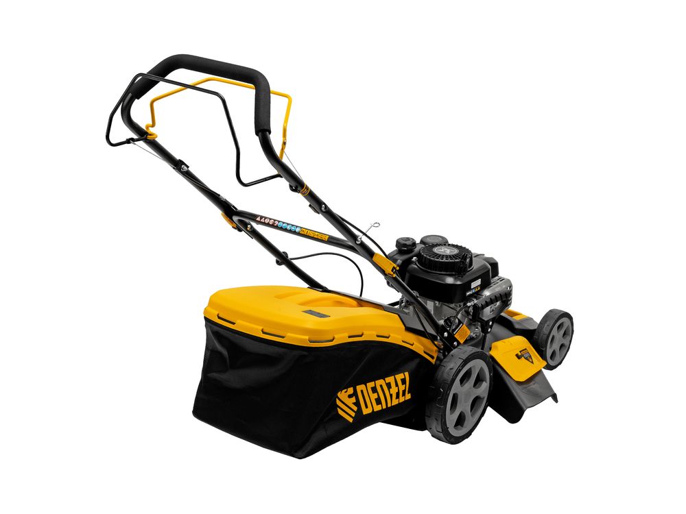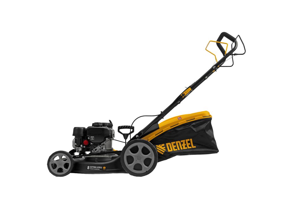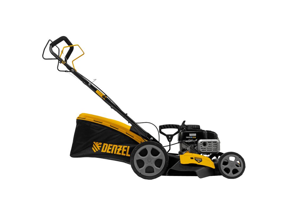 Бензиновая газонокосилка Denzel GLR-460SP-ZS 58824 с приводом на колеса и травосборником вместимостью 65 л, с надежным и экономичным 4-тактным двигателем объемом 149 см3, обеспечивает ширину прохода 46 см. Предназначена для стрижки газонов и скашивания травы в саду, будет полезна для ухода за дачным участком или придомовой территорией. Высота скашивания легко регулируется одним рычагом в диапазоне 25-70 мм (предусмотрено 8 уровней).