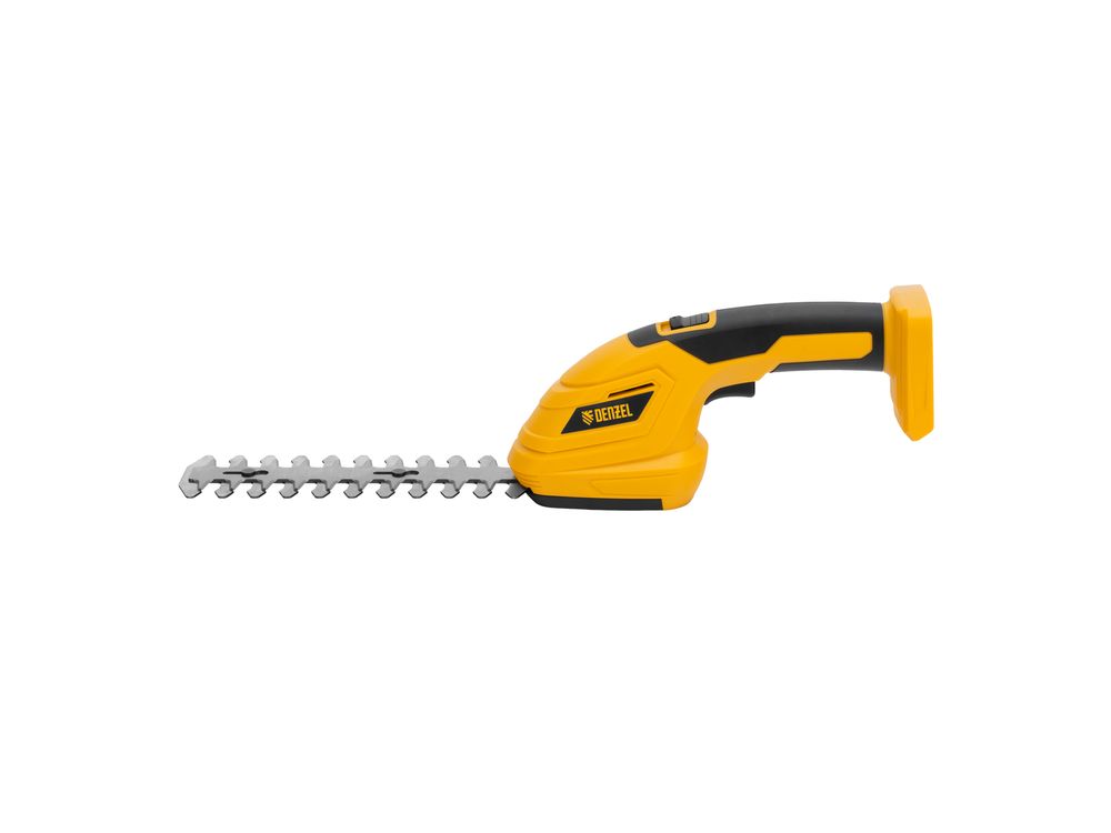 Аккумуляторные ножницы-кусторез Denzel CGS-100-0 59431 работают от батареи 18 В Li-Ion (не входит в комплект поставки) и предназначены для срезания травы, обрезки кустарников, листвы и тонких побегов деревьев диаметром до 8 мм. Инструмент оптимален для создания живой изгороди на дачном участке, создания ландшафтных скульптур из декоративных растений, подравнивания растительности вдоль заборов и бордюров.