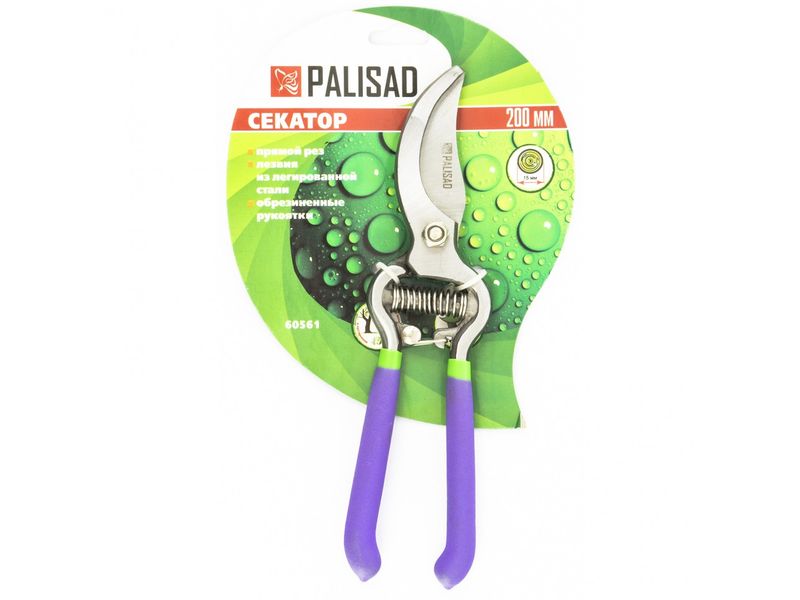 Секатор прямого реза Palisad 60561 общей длиной 200 мм, с обрезиненными рукоятками, используется для обрезки живых веток диаметром до 25 мм. Движущиеся в параллельных плоскостях лезвия производят гладкий и ровный срез, сводя к минимуму потерю сока растением. Регулировочный винт позволяет отрегулировать плотность смыкания лезвий. Секатор пригодится для работы на даче и в саду.