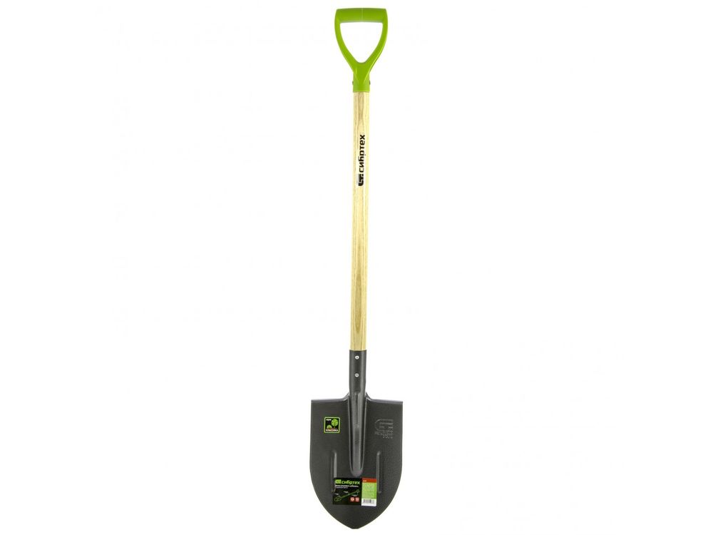 Лопата оснащена цельновырубной тулейкой и полотном клиновидной формы с ребрами жесткости, благодаря чему обладает высокой прочностью на излом.