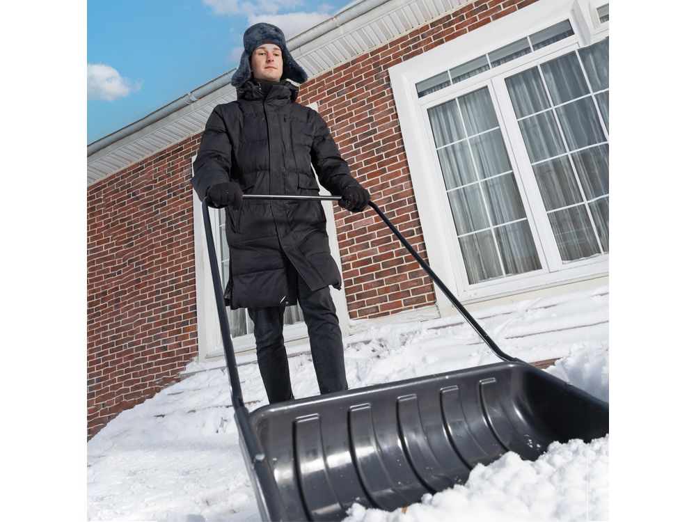 Купить Движок для уборки снега пластиковый, 690х470х1420 мм, стальная рукоятка,