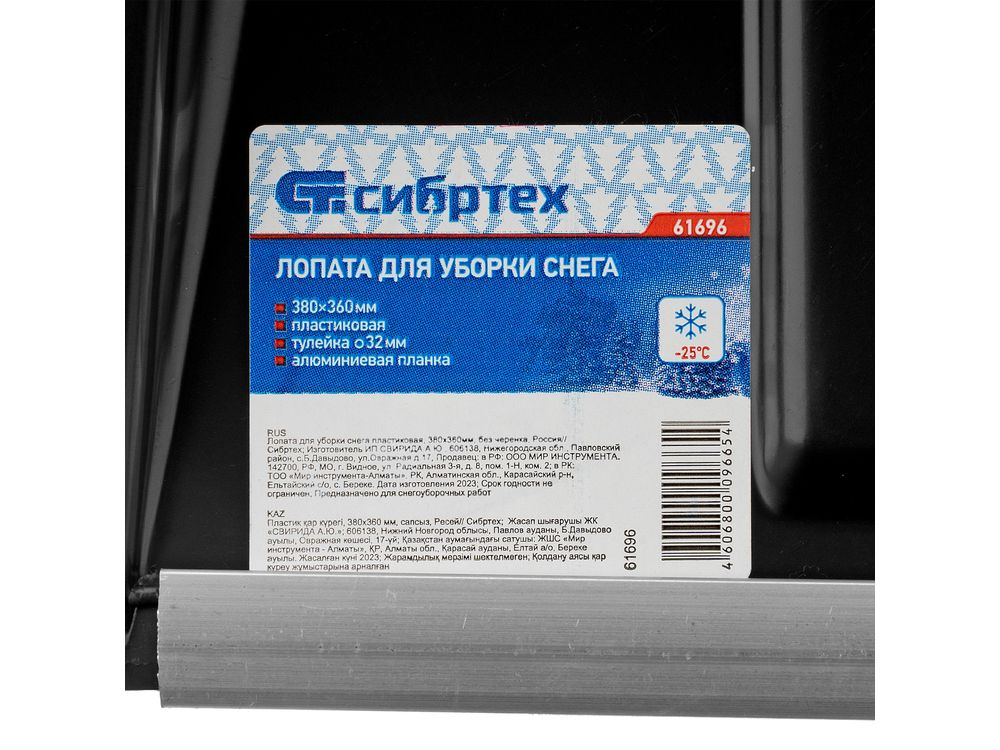 Пластиковая лопата для уборки снега Сибртех 61696 размером 380 х 360 мм, без черенка, предназначена для расчистки пространства перед подъездом и гаражом, дорожек, тротуаров после снегопада. Углубленный ковш позволяет захватывать и перемещать большое количества снега, обеспечивая эффективность работы.