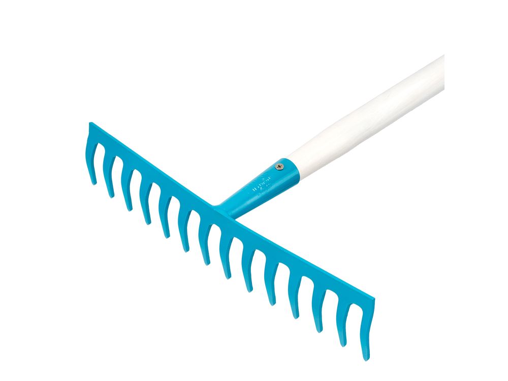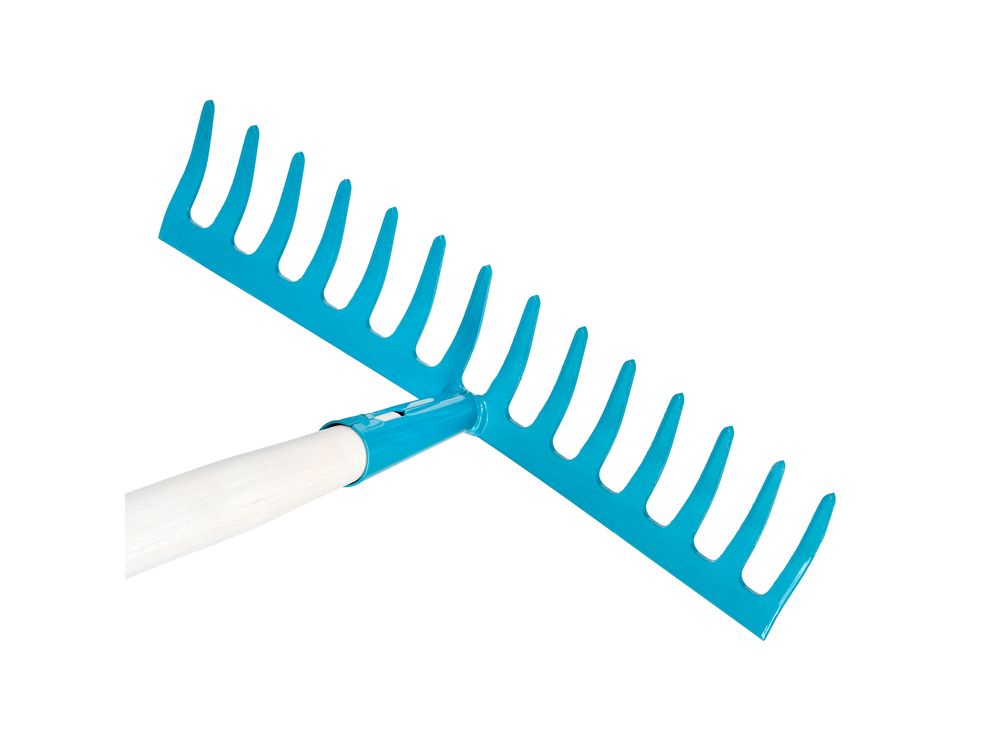 Стальные грабли Palisad Luxe 6178988 размером 360 х 1250 мм, с 14 прямыми зубьями, предназначены для садово-огородных работ. Они используются для выравнивания грядок и рыхления грунта. Заостренные на концах зубья облегчают решение поставленных задач. Грабли поставляются в сборе с деревянным лакированным черенком.