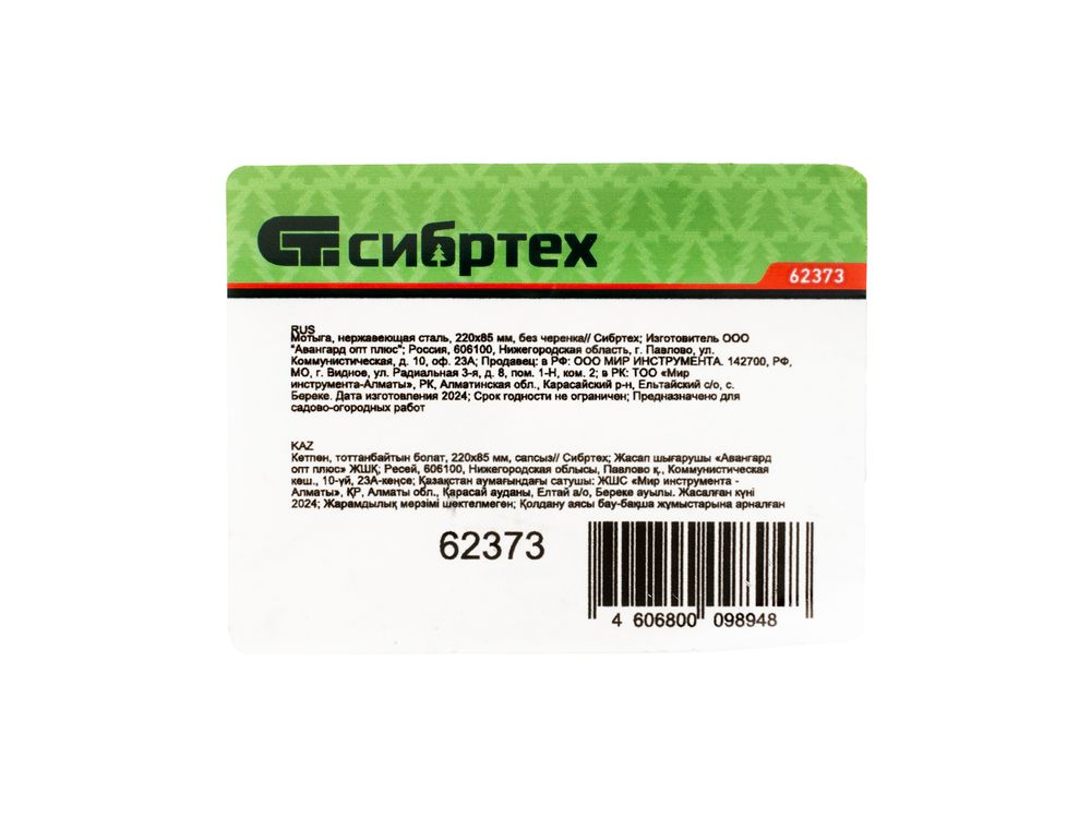 Мотыга Сибртех 62373 из нержавеющей стали, размером 220 х 85 мм, без черенка, — ручной инструмент для садово-огородных работ. Позволяет рыхлить почву, удалять сорняки, окучивать растения. Мотыга рассчитана на длительную эксплуатацию, поскольку ее полотно изготовлено из прочной «нержавейки», не подверженной коррозии. Черенок диаметром 30 мм приобретается отдельно. Инструмент будет полезен для ухода за посадками на дачном участке.