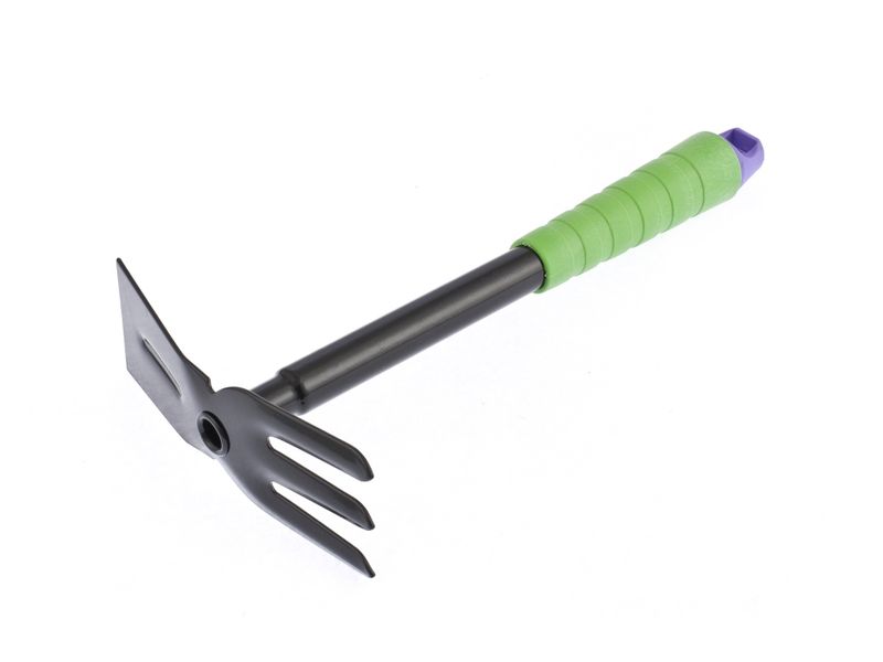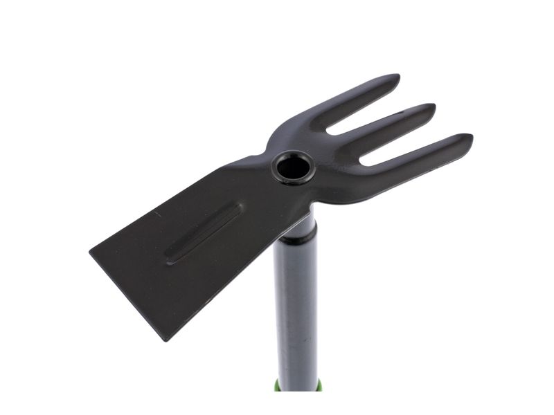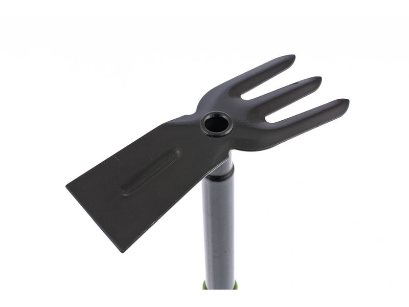 Удобное вскапывание и рыхление почвы в труднодоступных местах — полотно мотыжки совмещено с рыхлителем.