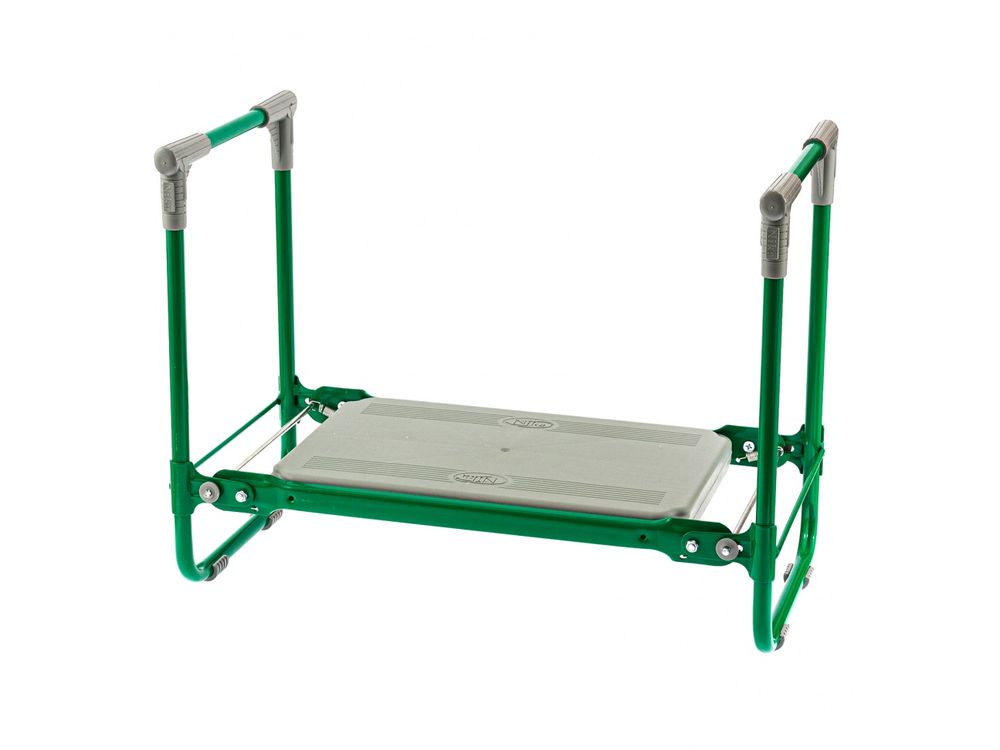 Зеленая садовая скамейка Nika 64556 используется для отдыха и удобства работы в саду. В изначальном положении на ней можно сидеть, а если ее перевернуть, то получается небольшая подставка под колени.