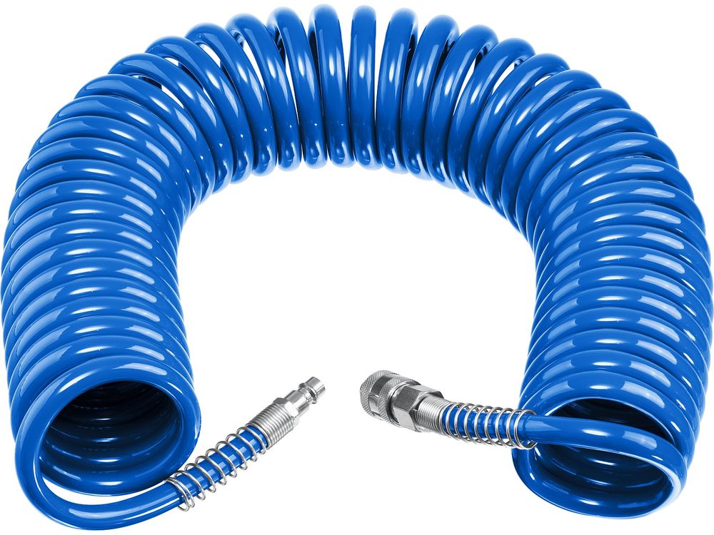 Воздушный спиральный шланг с фитингами рапид 15 м, 8х12 мм, 15 бар, ЗУБР Професиионал