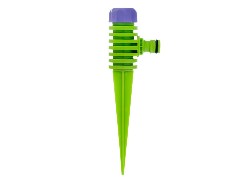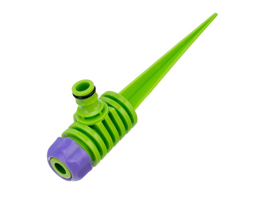Простой монтаж — распылитель быстро устанавливается и надежно фиксируется в почве благодаря штырю-пике.
