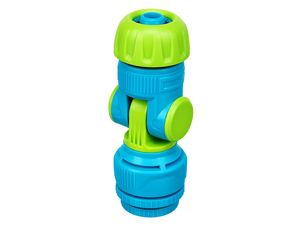 Удобное использование — шарнирный механизм вращается на 180°, что позволяет менять направление полива без риска повреждения шланга.