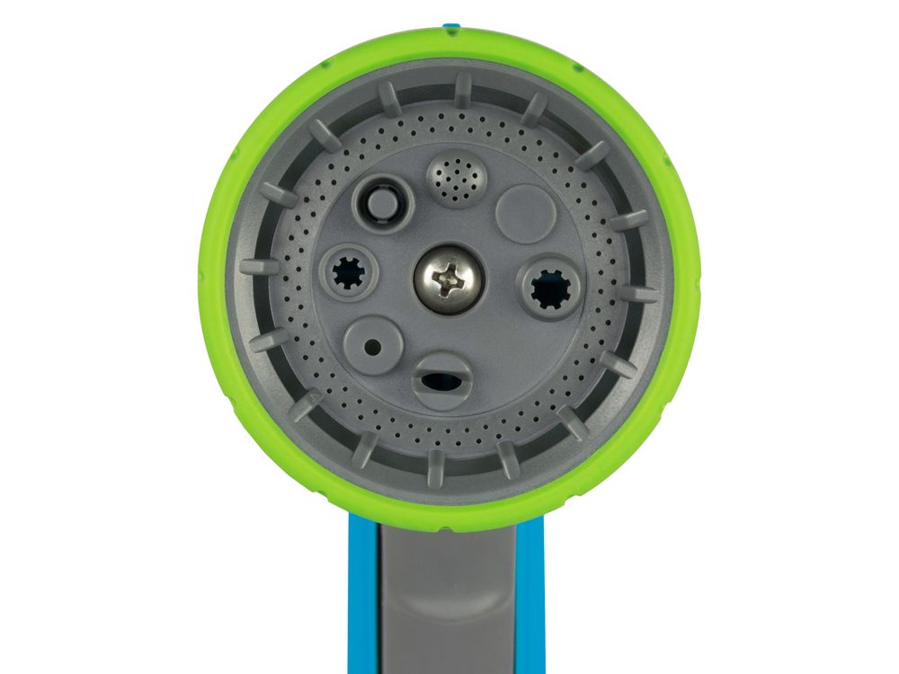8 типов распыления — конусное, вертикальное и горизонтальное, душ, жесткая струя, веер, туман, полный полив.