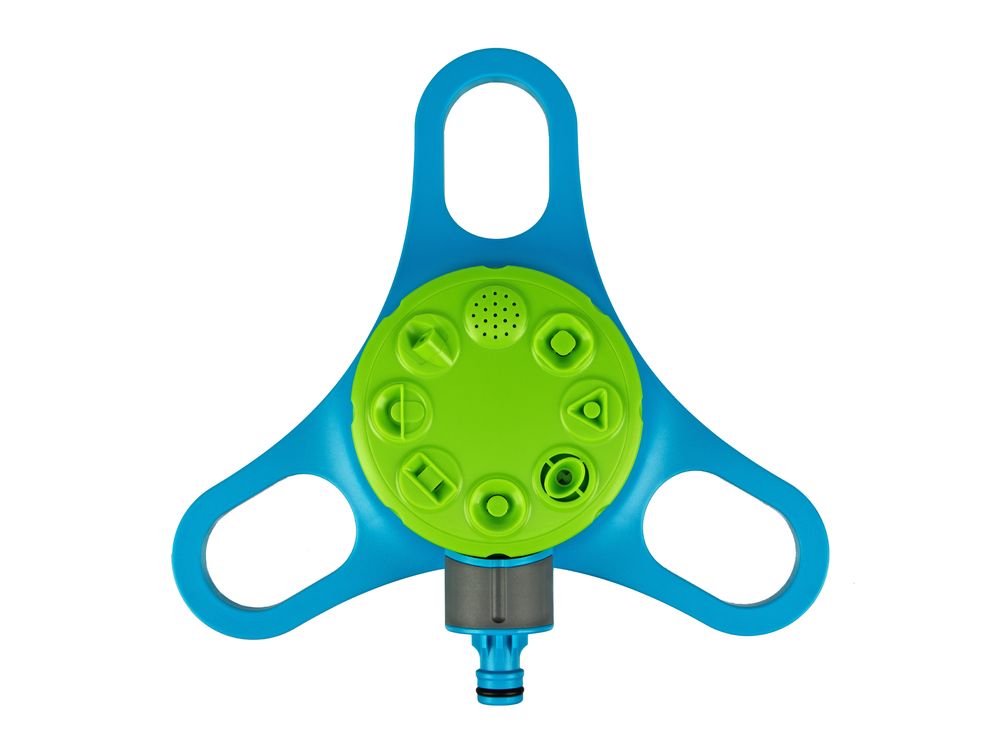 8 режимов — плоский, треугольный, секторный, полукруговой, квадратный, круговой, прямоугольный полив, а также распыление.