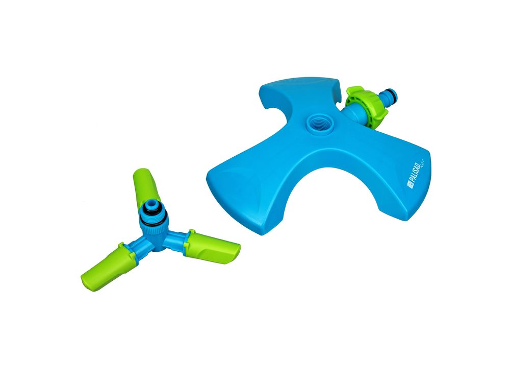 Вращающийся разбрызгиватель Palisad Luxe 65806 с 3 лопастями и утяжеленной базой используется для орошения газонов и садовых участков. Максимальная площадь полива составляет 130 кв. м. Наличие 3 режимов позволяет организовать орошение секторов различной площади.