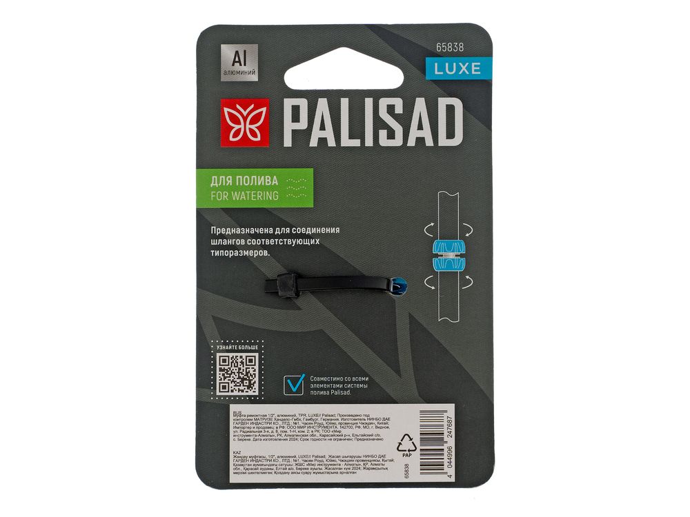 Муфта ремонтная алюминиевая Palisad LUXE 65838 позволяет соединить два шланга диаметром 1/2. С ее помощью можно удлинить поливочную линию или отремонтировать поврежденный участок шланга.