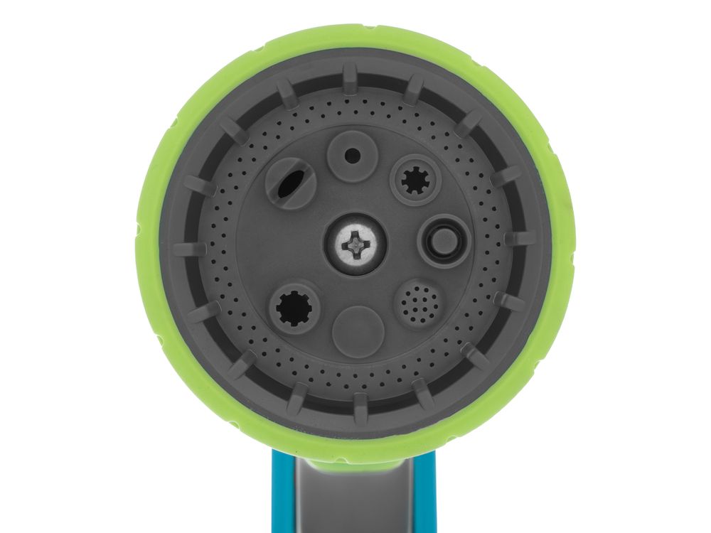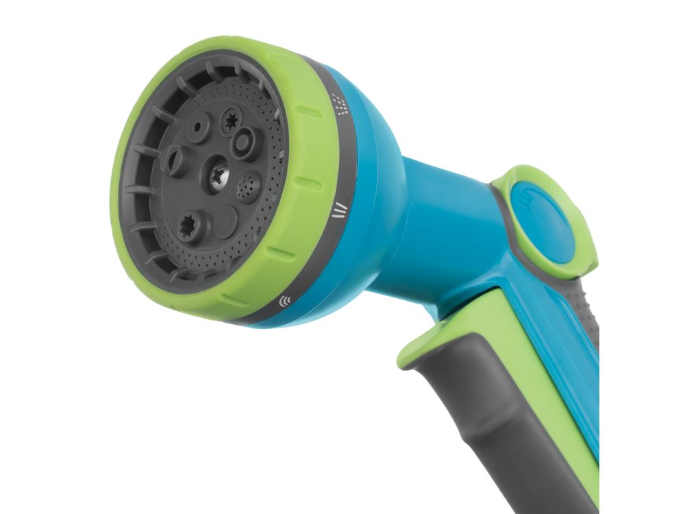 8 режимов полива — конусный, вертикальный и горизонтальный, душ, жесткая струя, веер, туман, а также полный полив.