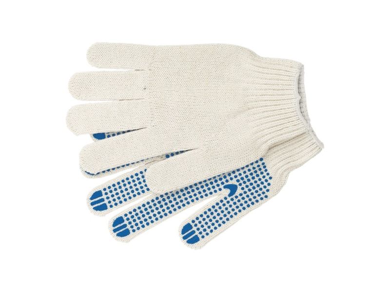 Трикотажные перчатки 67702 со стикером, с ПВХ-покрытием «Точка», 10 класса вязки, защищают руки от царапин, порезов, ссадин, мозолей и загрязнений. Тонкая пряжа сохраняет чувствительность пальцев, поэтому перчатки подходят для выполнения точных работ. Благодаря ПВХ-покрытию ладонной части инструменты не выскальзывают из рук. Перчатки используют в строительстве, на производстве, во время ремонта помещений и обслуживания автомобилей. Пригодятся они и в хозяйстве.