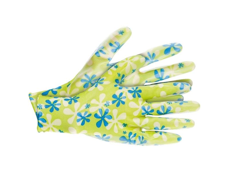 Купить Перчатки садовые из полиэстера с нитрильным обливом, зеленые, L