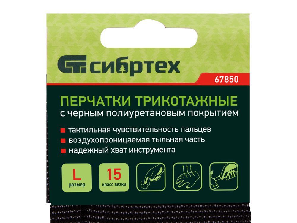 Трикотажные перчатки Сибртех 67850 размера L, с черным полиуретановым покрытием, 15 класса вязки, предназначены для защиты рук от загрязнений и механических воздействий во время выполнения строительных, автослесарных, упаковочных и других работ. Плотное покрытие предохраняет ладони от царапин, ссадин, порезов и мозолей. Перчатки будут полезны дома, в гараже или на даче.
