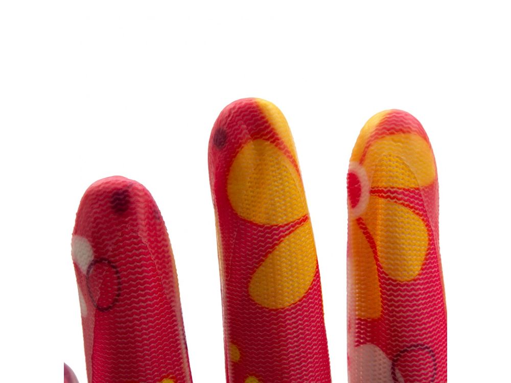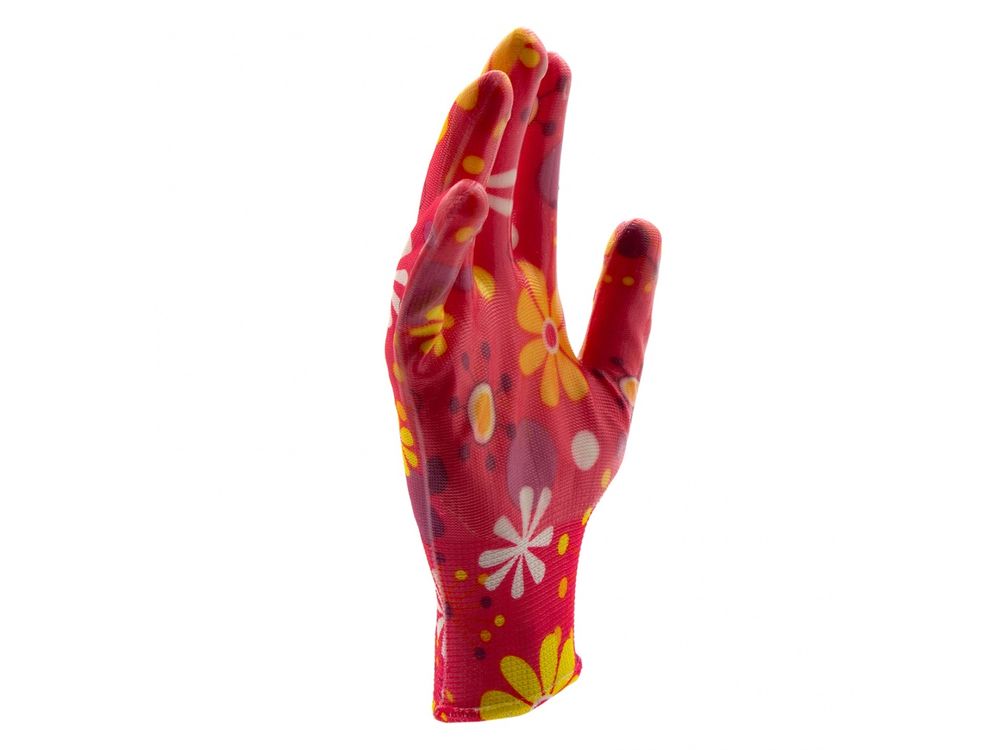 Перчатки садовые из полиэстера с нитрильным обливом, цветы, М