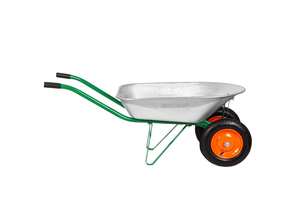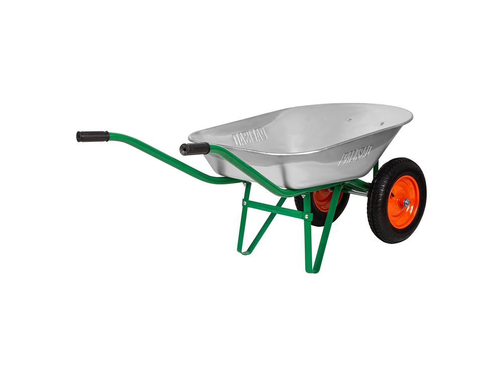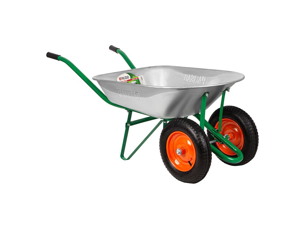 Садовая тачка Palisad 689225 с двумя колесами, грузоподъемностью 170 кг и с кузовом объемом 78 л, рассчитана на транспортировку садовых и легких строительных грузов. Избавляет от необходимости ручного перемещения тяжестей и позволяет снизить нагрузку на спину.