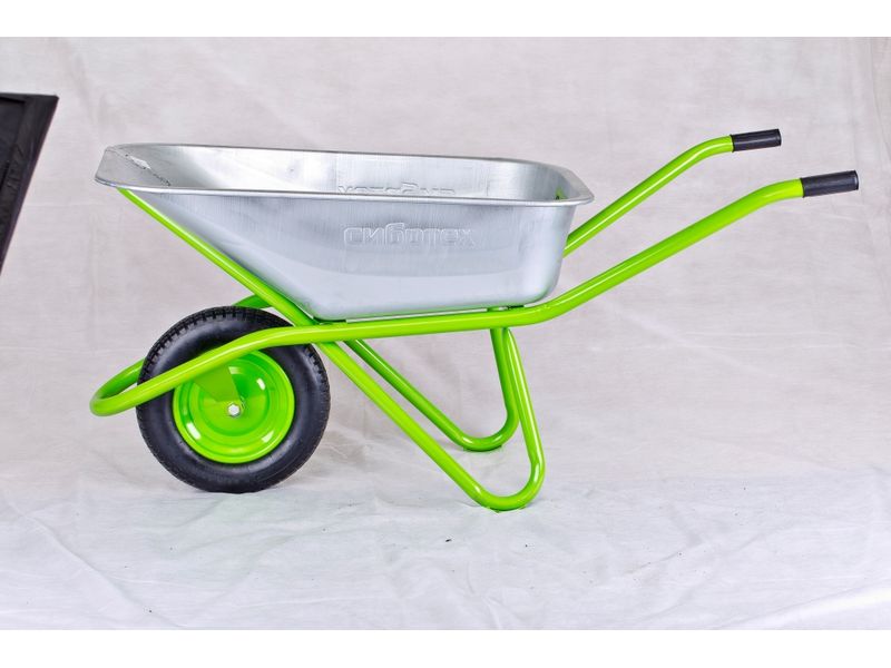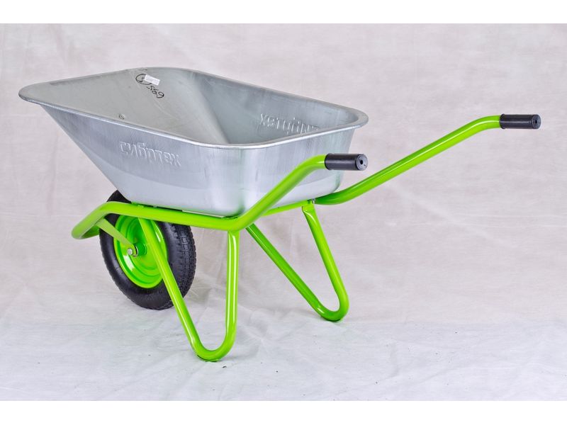 Тачка садово-строительная предназначена для перевозки различных грузов, строительных материалов, при проведении сельскохозяйственных или строительных работ.Для защиты от коррозии, рама, опора, колесный диск, окрашены порошковой эмалью.Упор обеспечивает удобство при фронтальной разгрузке.Кузов изготовлен из оцинкованной стали,имеет завальцованные борта, которые придают прочность верхнему краю кузова и повышенную стойкость к ударам.Дополнительная пора кузова увеличивает грузоподъемность.Тачка комплектуется пневматическим колесом с камерой.Наличие двух шариковых подшипников в колесе облегчает перемещение тачки с грузом.