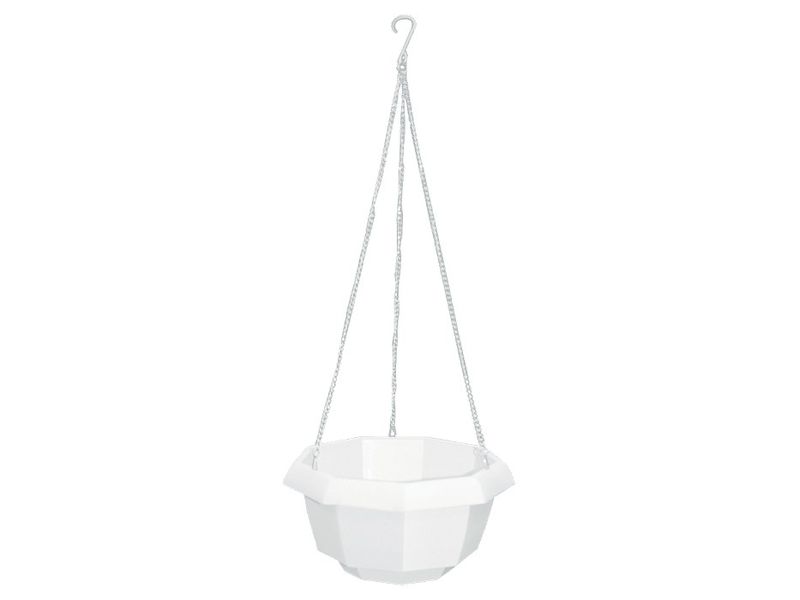 Надежность и долговечность — горшок изготовлен из прочного пластика, а крючок и цепи — из стали.