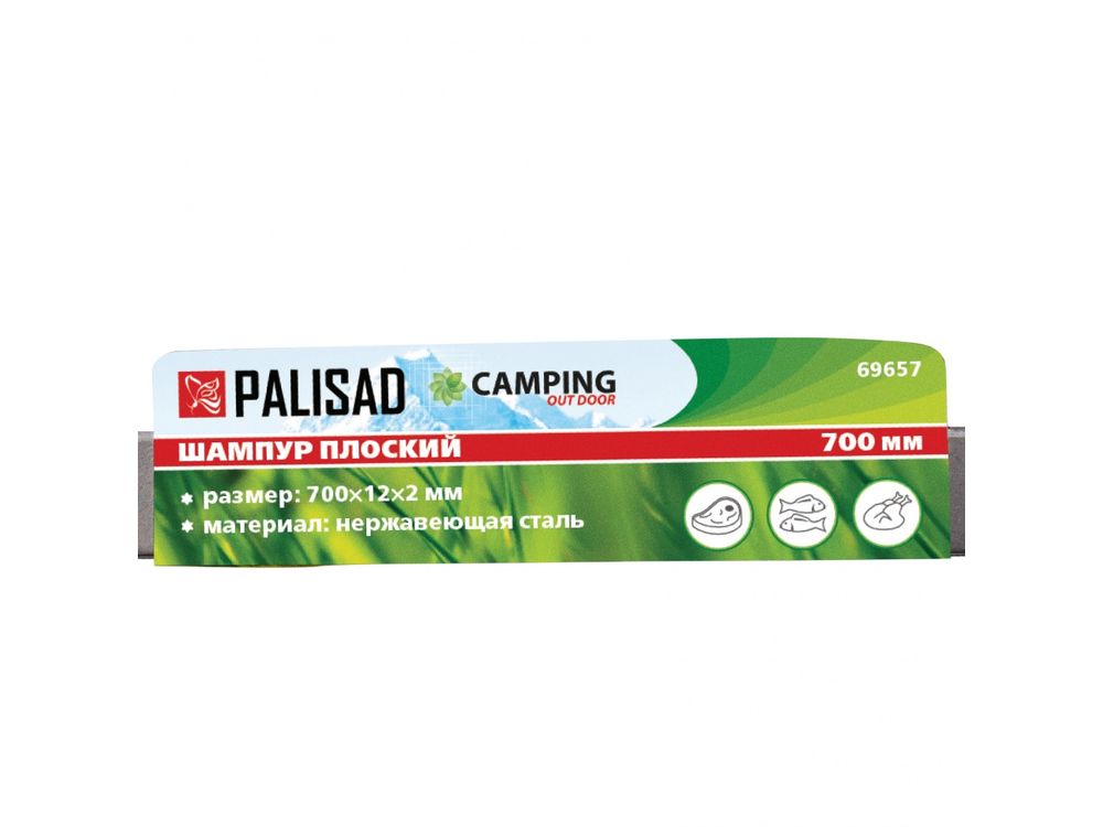 Шампур плоский, 700х12х2 мм, нерж. сталь, Camping-484