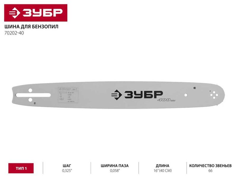 Шина Зубр "Универсал" для бензопил, шаг 0,325", паз 0,058", длина 16"(40см)-438