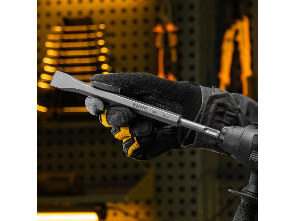 Зубило Denzel 703131 размером 14 x 20 x 250 мм, из стали 40Cr, с хвостовиком SDS-plus — оснастка для перфоратора. Предназначено для выполнения ударных, демонтажных работ с твердыми материалами, такими как камень, бетон, кирпич. Пригодится на строительной площадке.