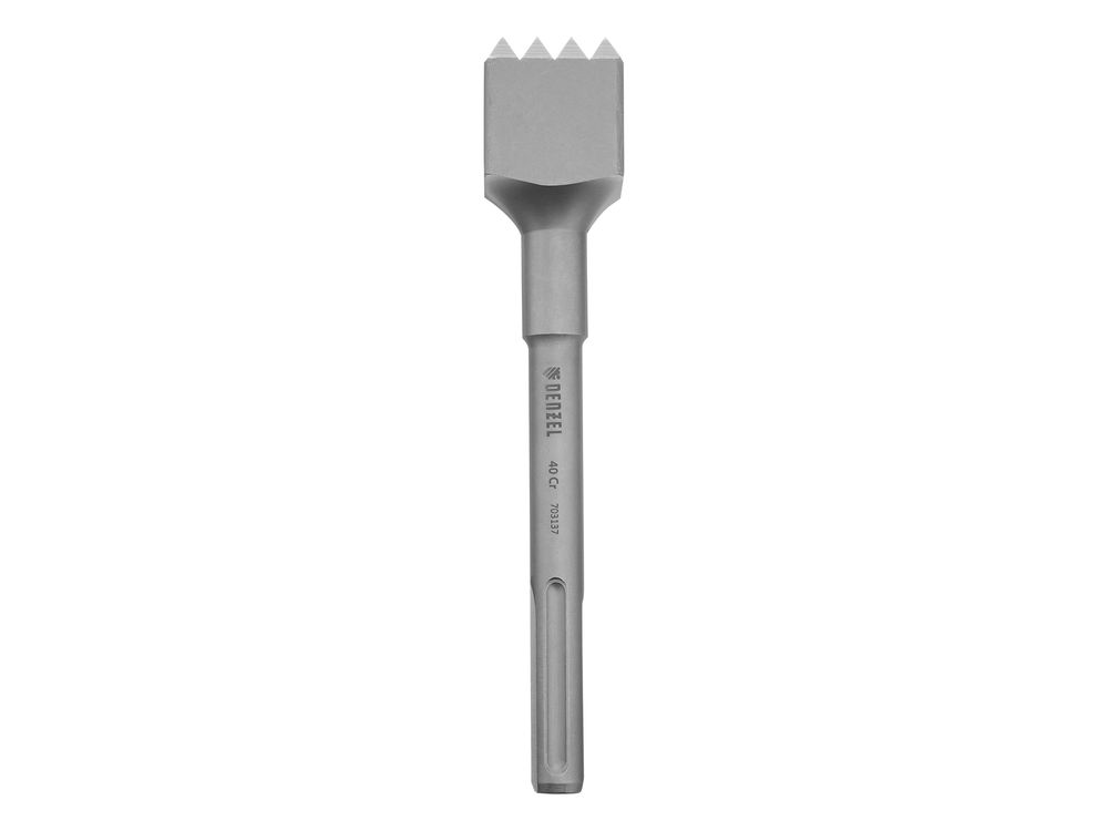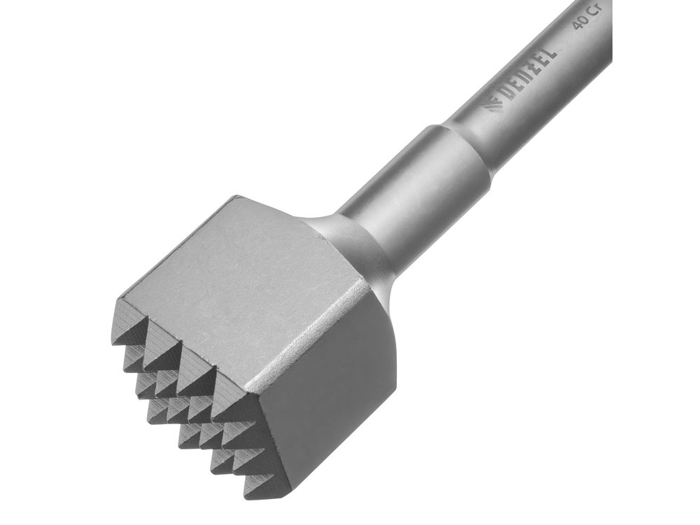 Бучарда Denzel 703137 размером 250 x 45 мм, с хвостовиком SDS-max, устанавливается в патрон перфоратора и используется для выполнения ударных работ. Позволяет придать шероховатость твердым поверхностям, оптимальна для обработки камня, кирпича, бетона, мрамора, гранита. Также применяется для удаления старых штукатурных и лакокрасочных покрытий.