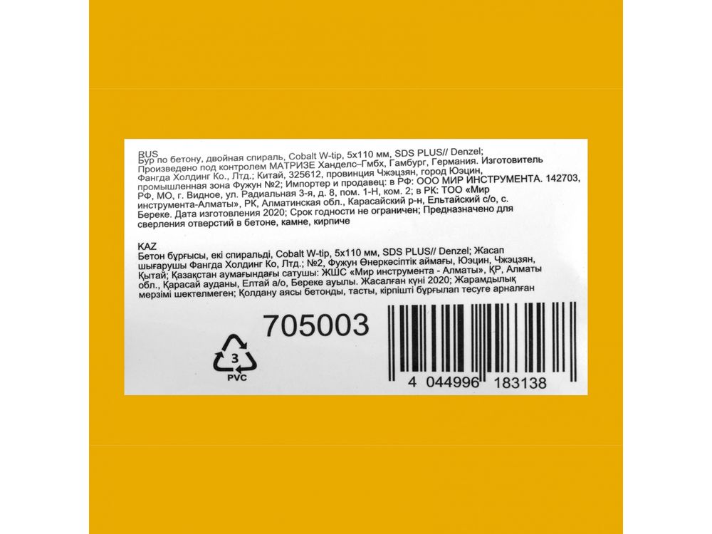 Бур по бетону Denzel Cobalt W-tip 705003 размером 5 х 110 мм, с хвостовиком SDS-plus и двойной спиралью, предназначен для сверления бетона, кирпича и камня. Используется в качестве оснастки для перфораторов с патроном SDS-plus. Бур оптимален для проведения строительных, ремонтных, монтажных работ.