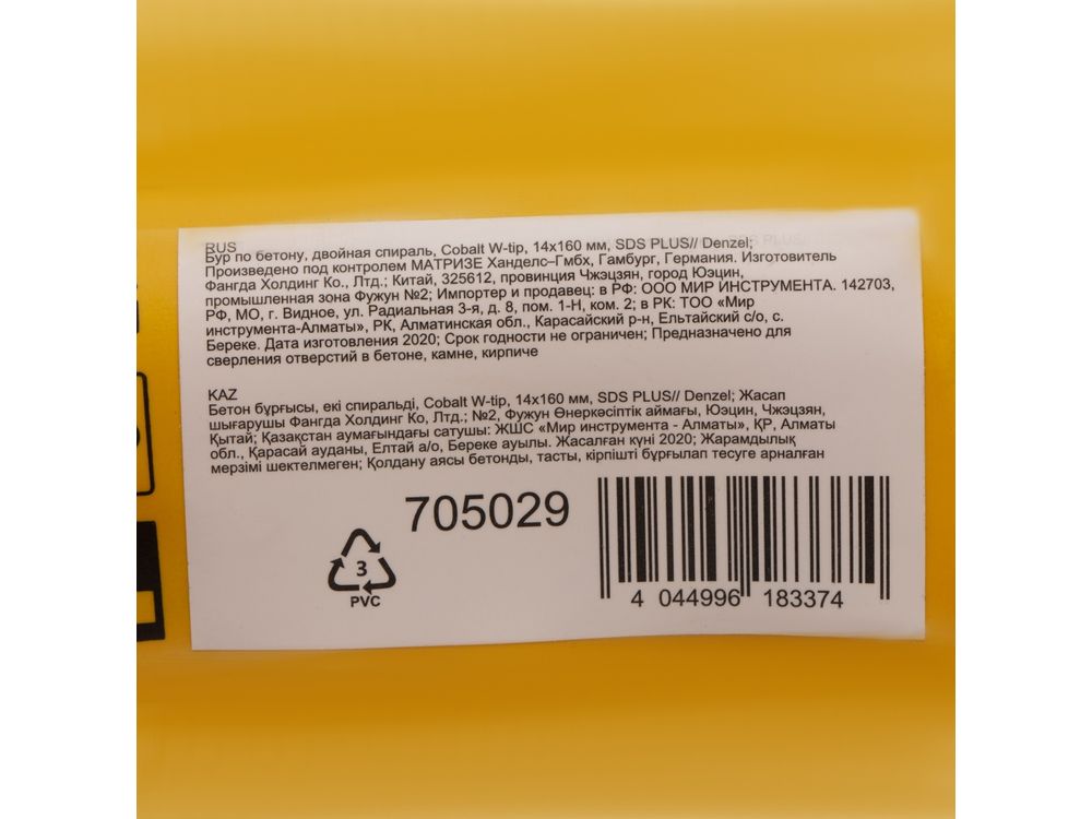 Бур по бетону Denzel Cobalt W-tip 705029 размером 14 х 160 мм, с хвостовиком SDS-plus и двойной спиралью, предназначен для сверления бетона, кирпича и камня. Используется в качестве оснастки для перфораторов с патроном SDS-plus. Бур оптимален для проведения строительных, ремонтных, монтажных работ.