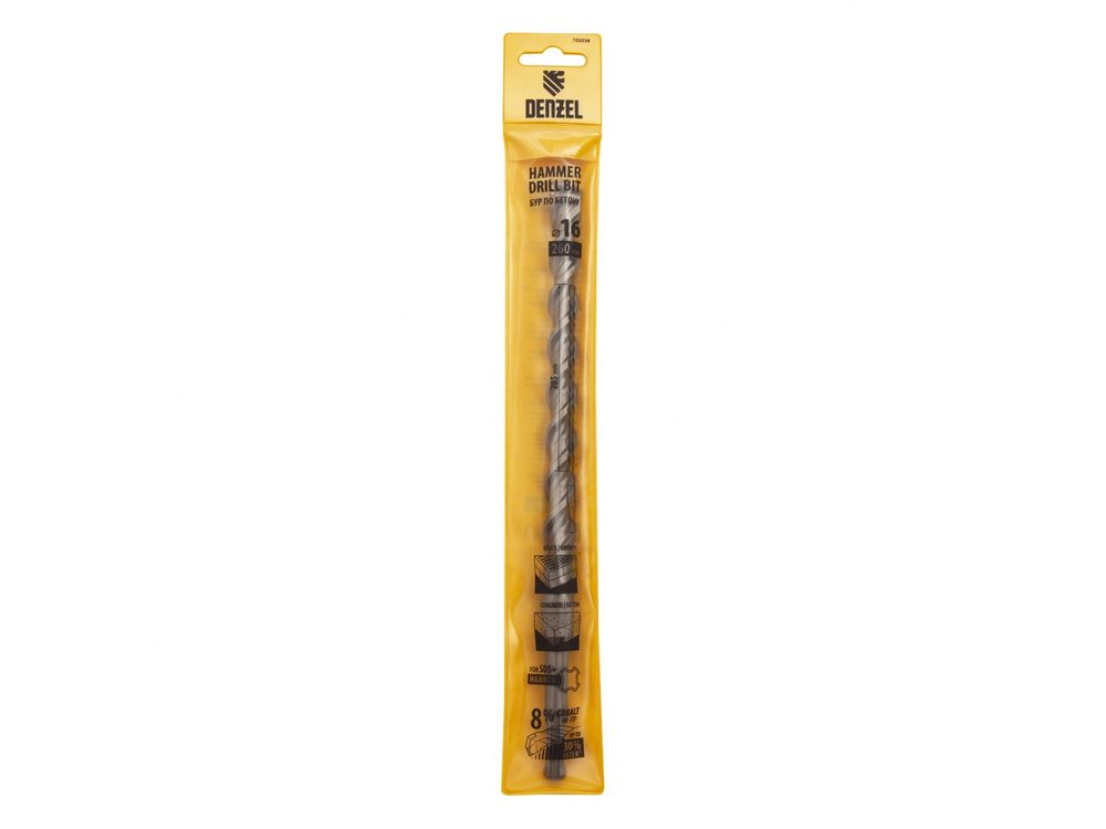 Бур по бетону Denzel Cobalt W-tip 705038 размером 16 х 260 мм, с хвостовиком SDS-plus и двойной спиралью, предназначен для сверления бетона, кирпича и камня. Используется в качестве оснастки для перфораторов с патроном SDS-plus. Бур оптимален для проведения строительных, ремонтных, монтажных работ.