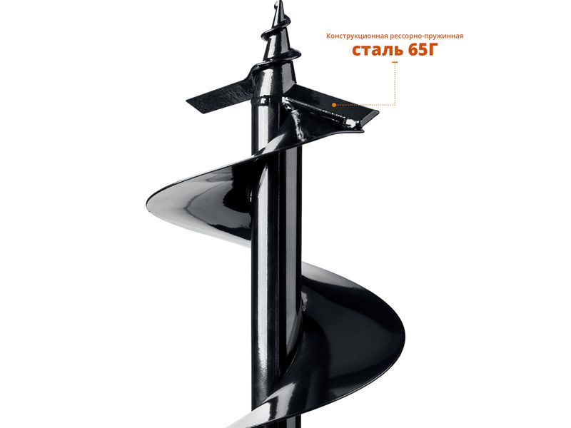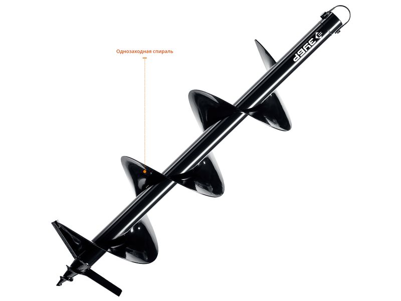 Шнек является сменным элементом для мотобуров ЗУБР. Он представляет собой винтообразный бур, который широко применяют для бурения скважин бытового назначения. Например, с его помощью можно бурить скважины для установки столбов. Благодаря винтовой форме шнек быстро проникает сквозь грунт и выбрасывает его наверх.