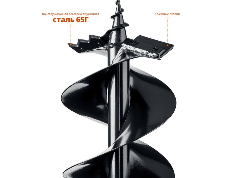 Шнек для мерзлого грунта используется совместно с мотобурами ЗУБР. Представляет собой инструмент винтовой конструкции с двумя режущими элементами, выполненным из высокопрочной стали. При помощи шнека можно бурить в мерзлом грунте скважины диаметром 200 мм.