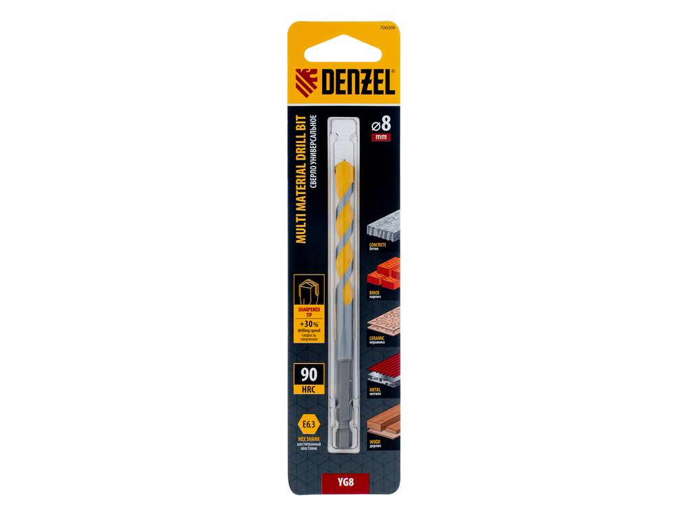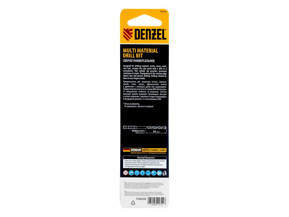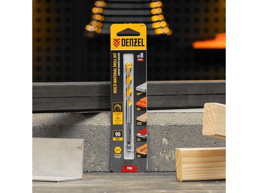 Универсальное сверло Denzel Multi Cut 706008 с шестигранным хвостовиком предназначено для получения отверстий диаметром 8 мм в бетоне, металле, керамике, древесине любых пород, фанере, пластмассе и других материалах. Используется при проведении строительных, ремонтных работ, также пригодится в быту.