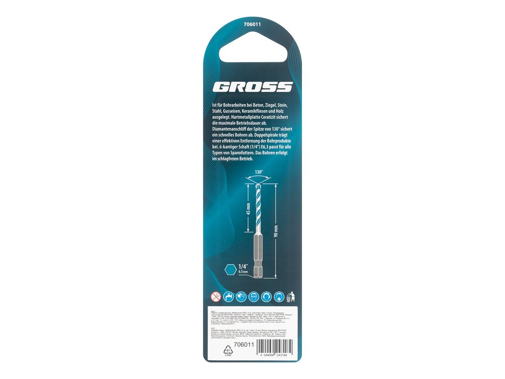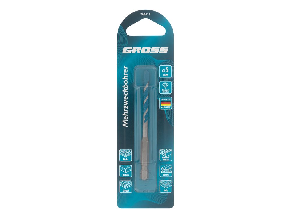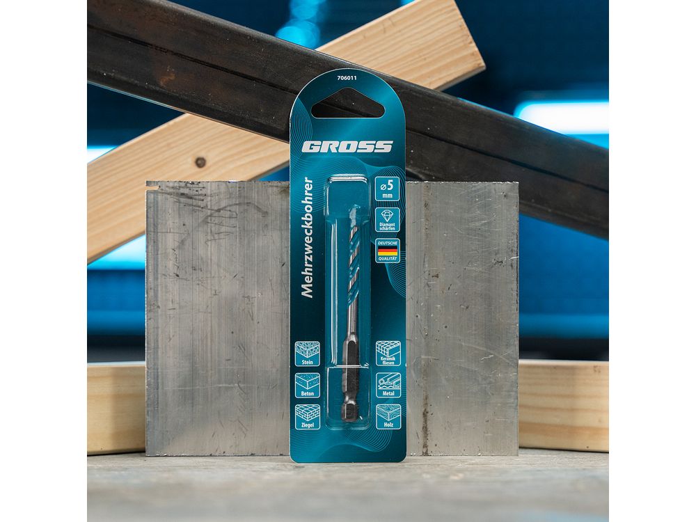 Универсальное сверло Gross Multipurpose PRO 706011 позволяет получать отверстия диаметром 5 мм в бетоне, камне и кирпиче. Подходит также для сверления древесины, металла и керамической плитки, что позволяет быстро переключаться между задачами без замены оснастки. Сверло пригодится при проведении строительных и ремонтных работ.