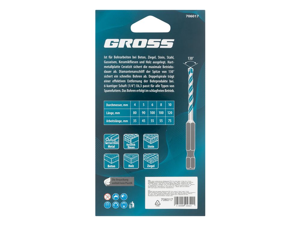 Набор сверл универсальных, Multipurpose PRO, 6-гр. хвостовик, 4-10мм, 5шт-424