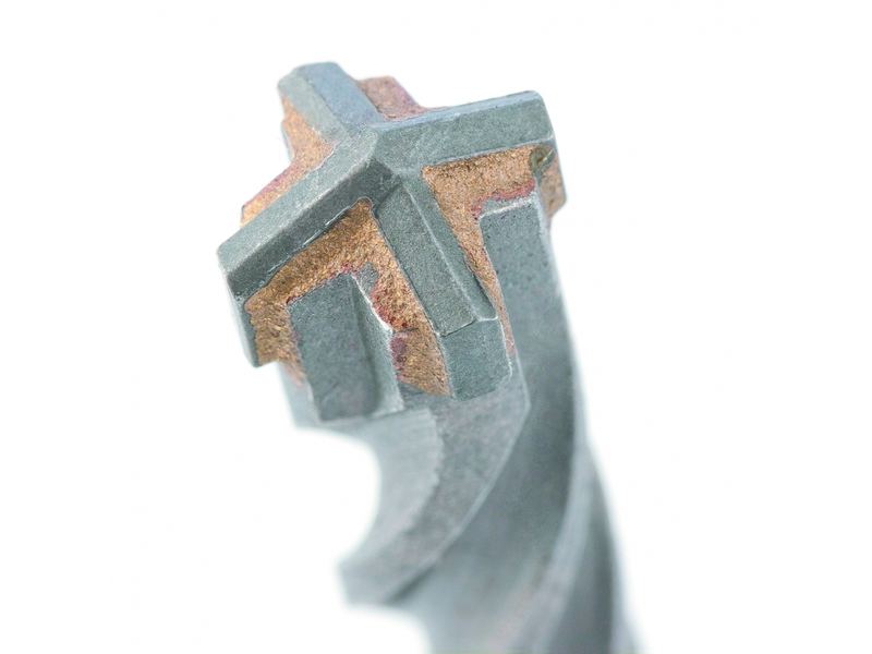 Высокий ресурс — крестовая режущая пластина из сверхтвердого сплава карбида вольфрама 80–90 HRC долговечна, эффективно сверлит камень и не ломается при попадании в арматуру.