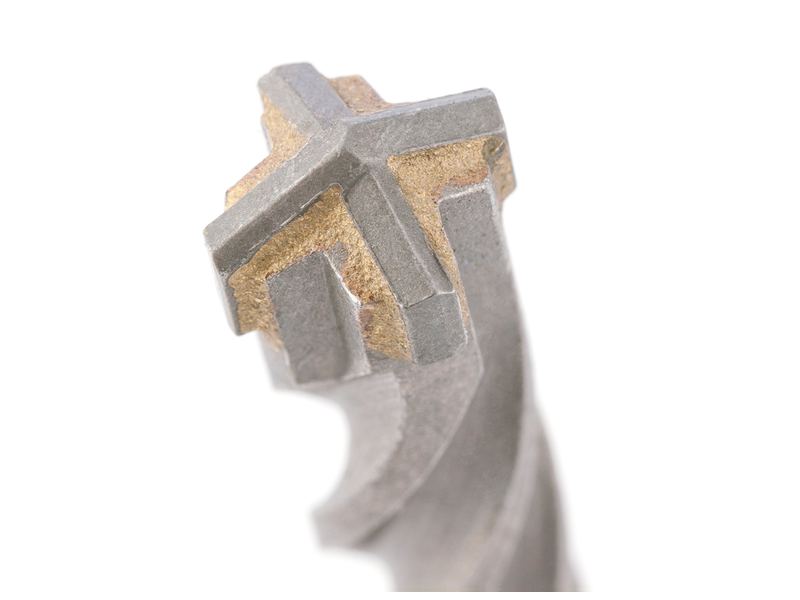 Высокий ресурс — крестовая режущая пластина из сверхтвердого сплава карбида вольфрама 80–90 HRC долговечна, эффективно сверлит камень и не ломается при попадании в арматуру.