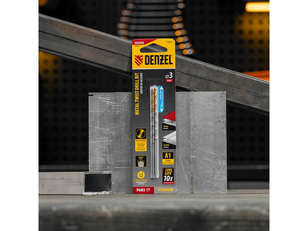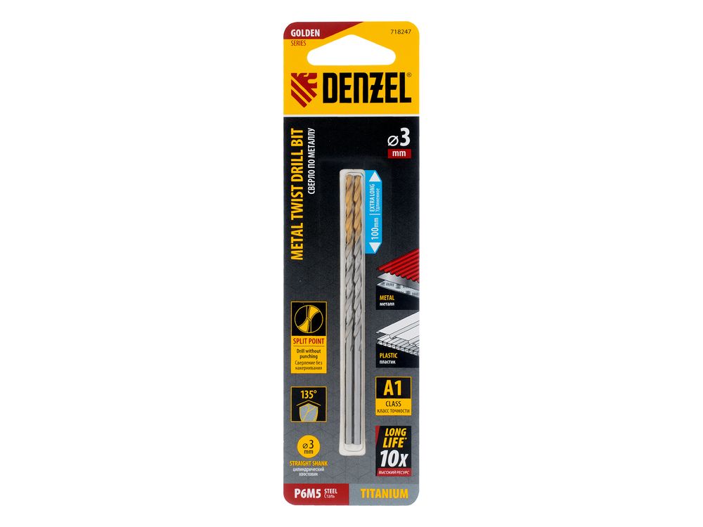 Удлиненное спиральное сверло по металлу Denzel Golden Tip 718247 из стали P6M5, размером 3 х 100 мм, 2 шт. в упаковке, предназначено для получения отверстий в легированных и цветных металлах — меди, алюминии, мягкой бронзе, титане, латуни. Оснастка позволяет эффективно справляться с этими задачами благодаря оптимальному углу заточки 135°. Класс точности A гарантирует высокое качество работ, а удлиненный профиль позволяет сверлить глубокие отверстия. Сверло используется для проведения монтажно-сборочных работ.