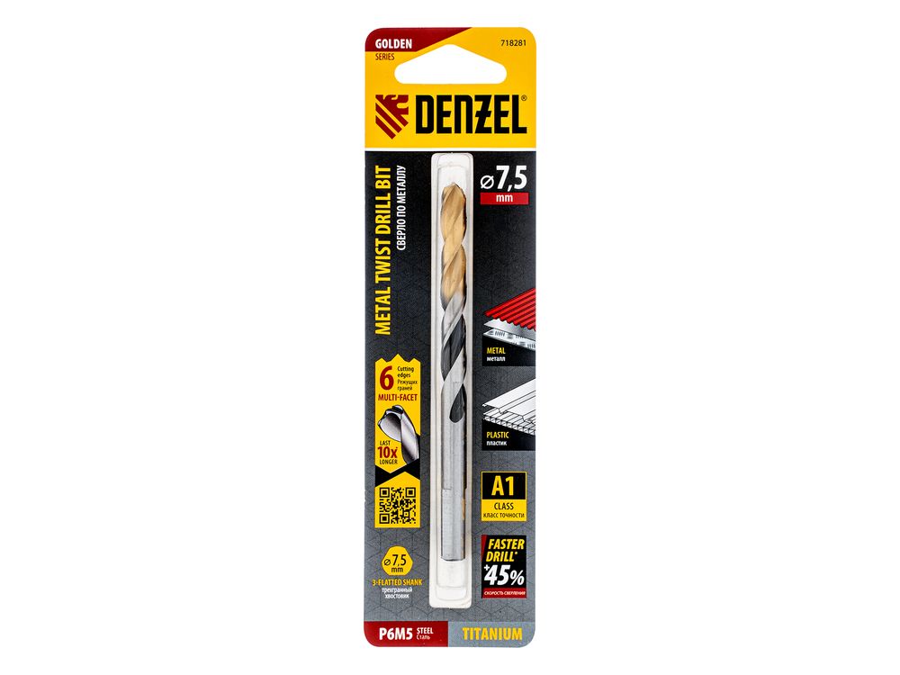 Спиральное сверло по металлу Denzel Golden Tip 718281 из стали P6M5, размером 7,5 х 109 мм, с многогранной заточкой, предназначено для получения отверстий в легированных сталях и цветных металлах. Многогранная заточка позволяет получать чистые и ровные отверстия практически без заусенцев. Сверлу присвоен класс точности A, что гарантирует высокое качество работ. Оснастка подходит для бытового и профессионального применения.